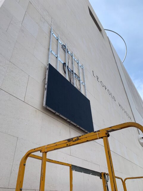 Hohe Qualität und exakte Auflösung waren für dieses Projekt gefragt. Jetzt können die Bilder draußen auf dem Screen die Ausstrahlung der Gemälde wiedergeben. Vollautomatisiert laufen die Infos über den Screen, Licht- und Temperatur-Sensorik sorgen für perfekte Fernüberwachung. Und per Knopfdruck können stets neue Sujets auf die außergewöhnlichen Ausstellungen des Leopold Museum hinweisen.