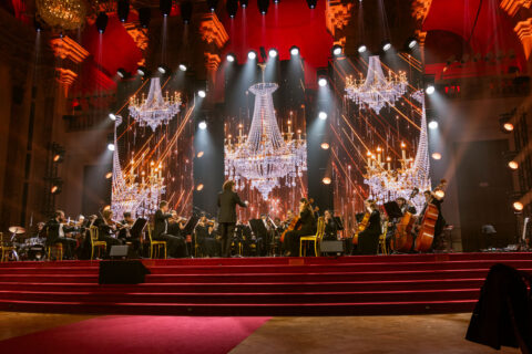 Aufgrund der Höhe der LED-Displays bedurfte es einer zusätzlichen Layher-Konstruktion, die ca. 1,50 Meter der ohnehin schon kleinen Bühne einnahm. Dank einer durchdachten Planung konnte im vorderen Bereich trotzdem ein 36-köpfiges Orchester wirkunsvoll platziert werden. Einer detaillierten Vorplanung sowie Abstimmung mit Wilson Dow ist es außerdem zu verdanken, dass der Aufbau ohne Zwischenfälle und in relativ kurzer Zeit erfolgen konnte. Das verschaffte Wilson Dow und uns eine ungestörte Probezeit von mehr als einem Tag – perfekt, um einen reibungslosen Ablauf der Show zu gewährleisten.