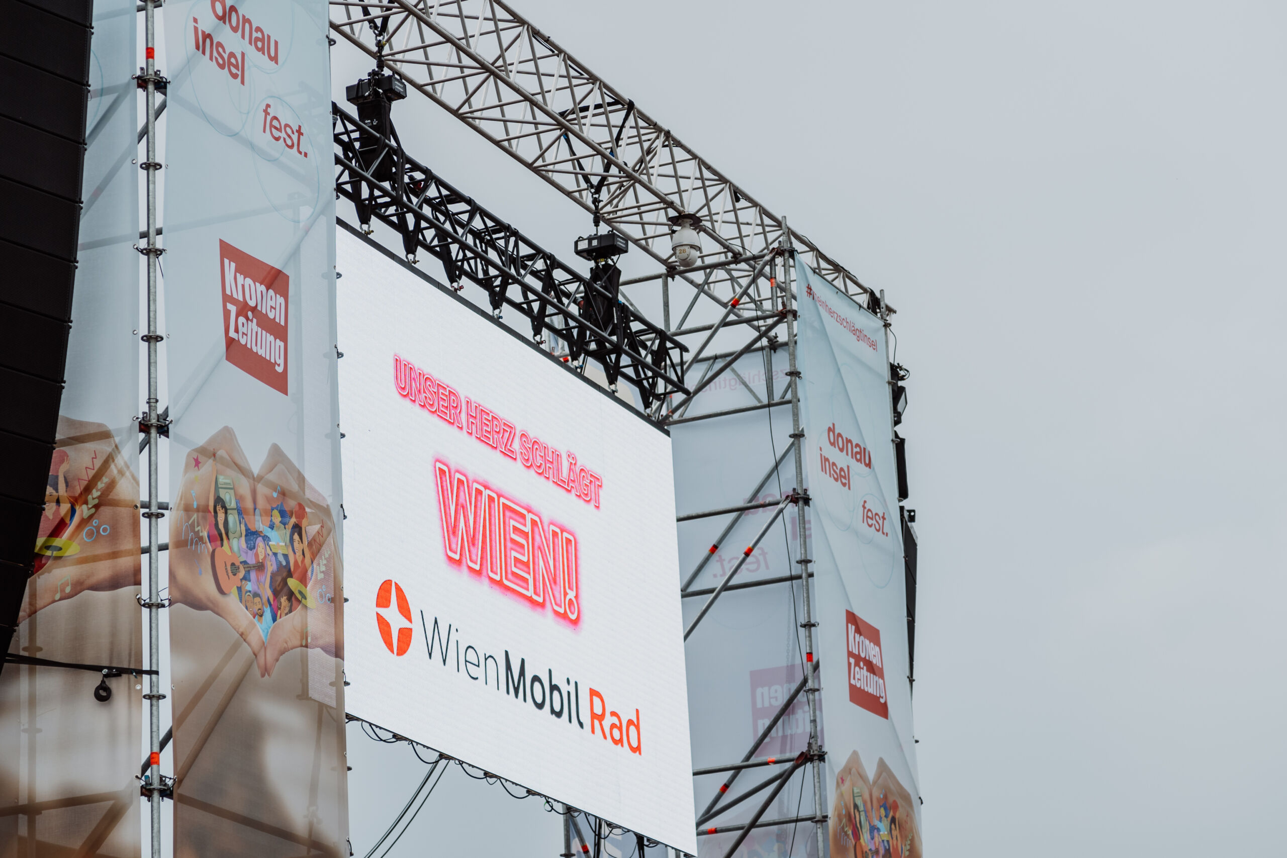 Bei zum Teil hochsommerlichen Temperaturen waren wir auch in diesem Jahr für vielfältige Technikinstallationen – wortwörtlich verteilt über das gesamte Inselgelände – verantwortlich. Die insgesamt vier Meetingpoints wurden auch heuer wieder mit unseren eigens für das Donauinselfest konzipierten Media Containern ausgestattet. 2018 kamen die umgerüsteten Container als leicht zu transportierendes Gerüst für LED-Displays erstmals im Rahmen des Open-Air-Festivals zum Einsatz.