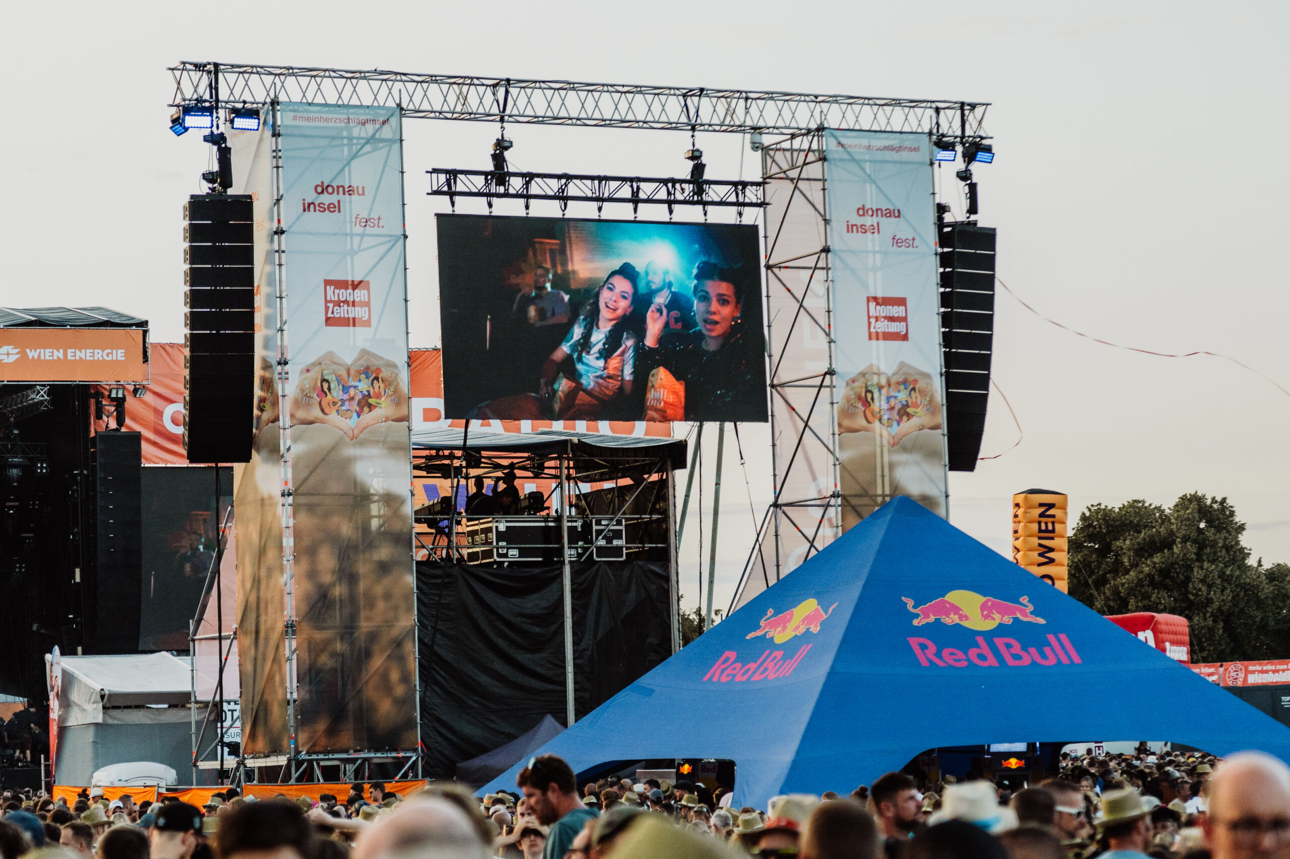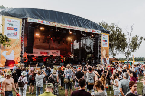 Zusätzlich lag die Technik mehrerer Stages in unseren Händen. So übernahmen wir sowohl die gesamte Bühnentechnik für die Bank Austria/Radio 88.6 Rock Bühne als auch für die Flughafen Wien/Radio Niederösterreich Schlager & Austrohits-Bühne und sorgten für einen reibungslosen Auftritt, unter anderem für Bands wie Madsen oder Schlagerstars wie Semino Rossi. Für die 88.6 Rock Bühne brachten wir in diesem Jahr zusätzlich eine neue LED-Wall an, die von uns – passend zu den Acts – mit Visuals bespielt wurde. Bei der Festbühne von Wien Energie/radio fm4/Radio Wien/HITRADIO Ö3 vertrauten die Veranstalter ebenfalls auf unser Know-how. Drei von uns zur Verfügung gestellte und installierte 50 m2 und 18 m2 große LED-Walls zierten die beiden Seiten bzw. wurden in Verlängerung der Festbühne angebracht und sicherten eine gut sichtbare Live-Übertragung der Geschehnisse auf der Bühne sowie im Publikum bis in die letzten Reihen. An den drei Tagen Donauinselfest kamen so insgesamt 80 Techniker, 250 m2 LED-Flächen, 200 Scheinwerfer, 150 Lautsprecher und 15 Sattelzüge zum Einsatz, die das Material anlieferten.
