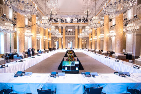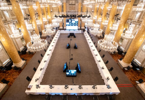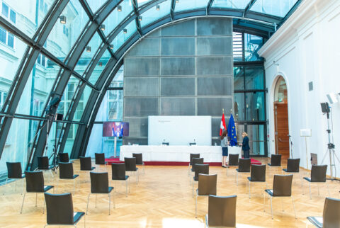 Die Vertreter von 18 europäischen Ländern und Institutionen trafen sich im Sommer 2020 in der Wiener Hofburg – bei diesem technisch sehr umfangreichen Hybrid Event war vor allem Flexibilität gefragt. Während die Delegierten über ihre Dolmetscher digital über die Migrationspolitik diskutierten, waren rund 50 unserer Mitarbeiter damit beschäftigt, diese Konferenz technisch auf sichere Beine zu stellen.
