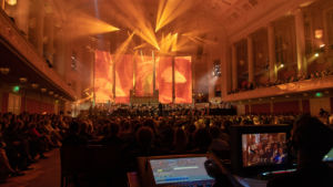 Einmal im Jahr verwandelt sich das Wiener Konzerthaus in einen glamourösen Filmpalast und die Bundeshauptstadt wird mit „Hollywood in Vienna“ einmal mehr zum Mekka für Filmmusikfans. Heuer bat Initiatorin und Organisatorin Sandra Tomek niemand geringeren als Hans Zimmer nach Wien, dem Popstars der Komponisten und Meister aller Genres. Gefeiert wurde er nicht nur mit Standing Ovations vom Publikum, sondern auch von Freunden und Wegbegleitern: allen voran die australische Sängerin und Golden Globe Preisträgerin Lisa Gerrard, die u.a. den Titelsong zu „The Gladiator“ interpretierte, der aus Venezuela stammende Bläser Pedro Eustache, dessen Flöten Soli auf zahlreichen Zimmer Soundtracks, wie „Kung Fu Panda verewigt, sind, der Wien-russische Geigenvirtuose Aleksey Igudesman, der mit Zimmer den Soundtrack zu „Sherlock Holmes“ komponierte sowie die Hans Zimmer Solistinnen Rusanda Panfili, Lucy Landymore, Marie Spaemann und viele mehr. Mit einer Weltpremiere überraschte Tomek selbst Hans Zimmer – die Sopranistin Valentina Nafornita interpretierte gemeinsam mit dem Chor Neue Wiener Stimmen eine 20minütige opulente Suite zu „The Da Vinci Code“. Für die visuelle, programmatische und konzeptionelle Gestaltung von »Hollywood in Vienna« zeigte sich wieder Co-Produzent Michael Balgavy verantwortlich. Zu diesem wunderschönen, stimmungsvollen Konzert lieferte Habegger die Eventtechnik ins Wiener Konzerthaus und setzte die imposanten Werke ins richtige Licht.