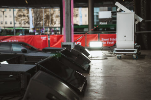Unsere technische Verantwortung umfasste die Audiotechnik für die offiziellen Programmpunkte sowie das Festival, die Lichttechnik inklusive Rigging, umfangreiche Video- bzw. LED- sowie Kameratechnik für die Übertragung unterschiedlicher Live-Bilder an beiden Standorten. Vor allem die historische Einfahrt des Premierenzugs im Bahnhof Klagenfurt spielte in diesem Zusammenhang eine entscheidende Rolle. Die Einzigartigkeit dieses Projekts stellte unser Profi-Team auch vor besondere Herausforderungen. Denn um eine gleichzeitig, exakt abgestimmte Umsetzung in Graz und Klagenfurt möglich zu machen, mussten sowohl unsere Profis vor Ort als auch unser Logistics und Warehouse Team präzise, genau nach Zeitplan Hand in Hand arbeiten.
