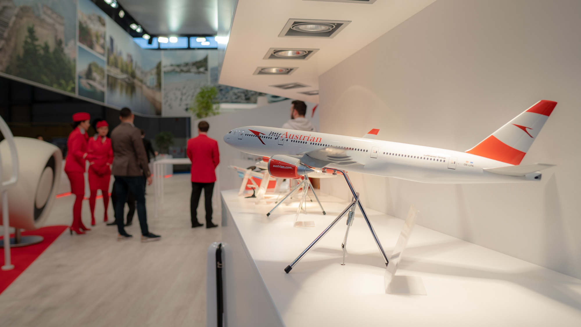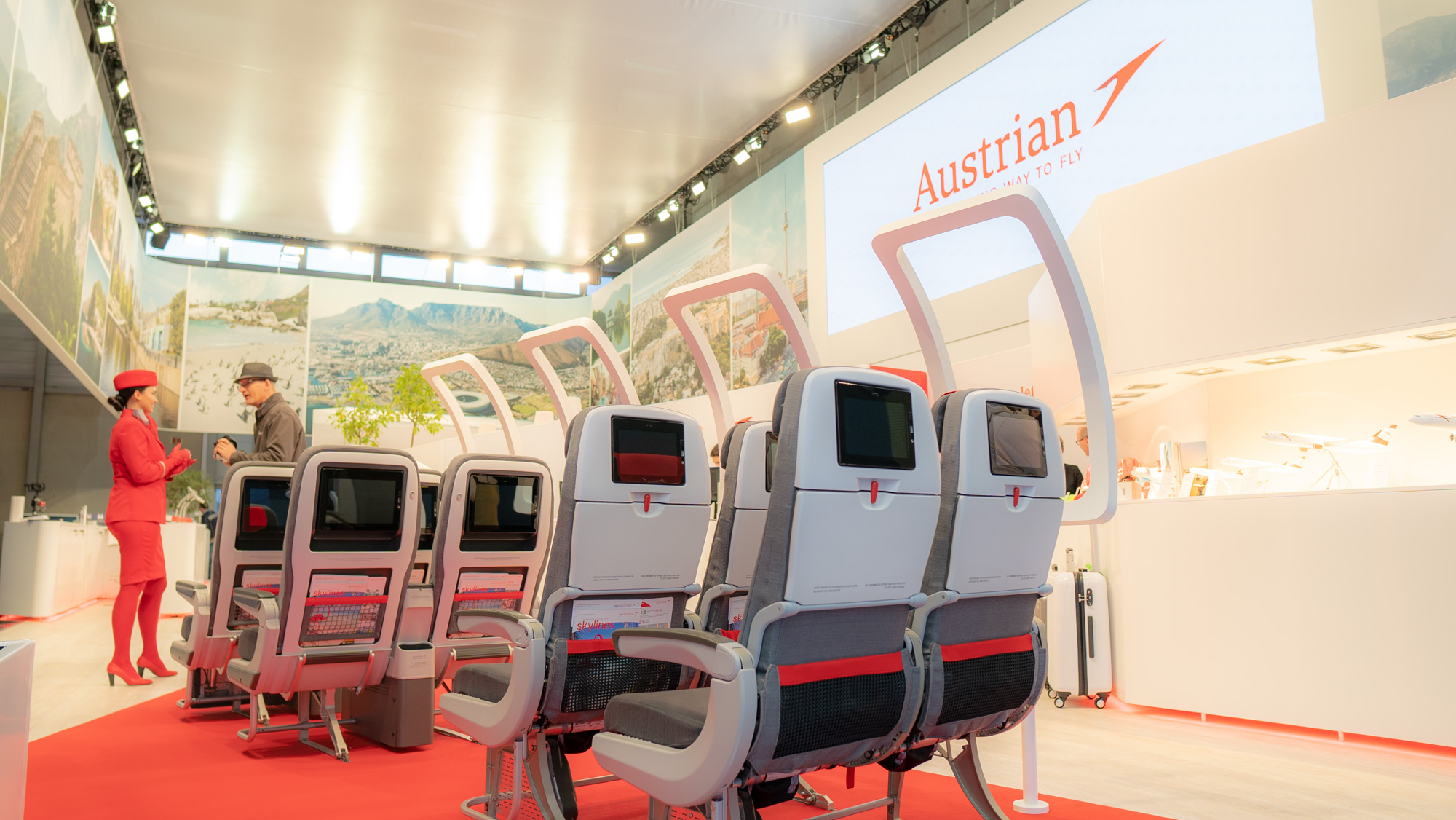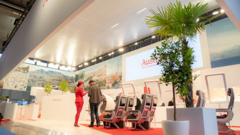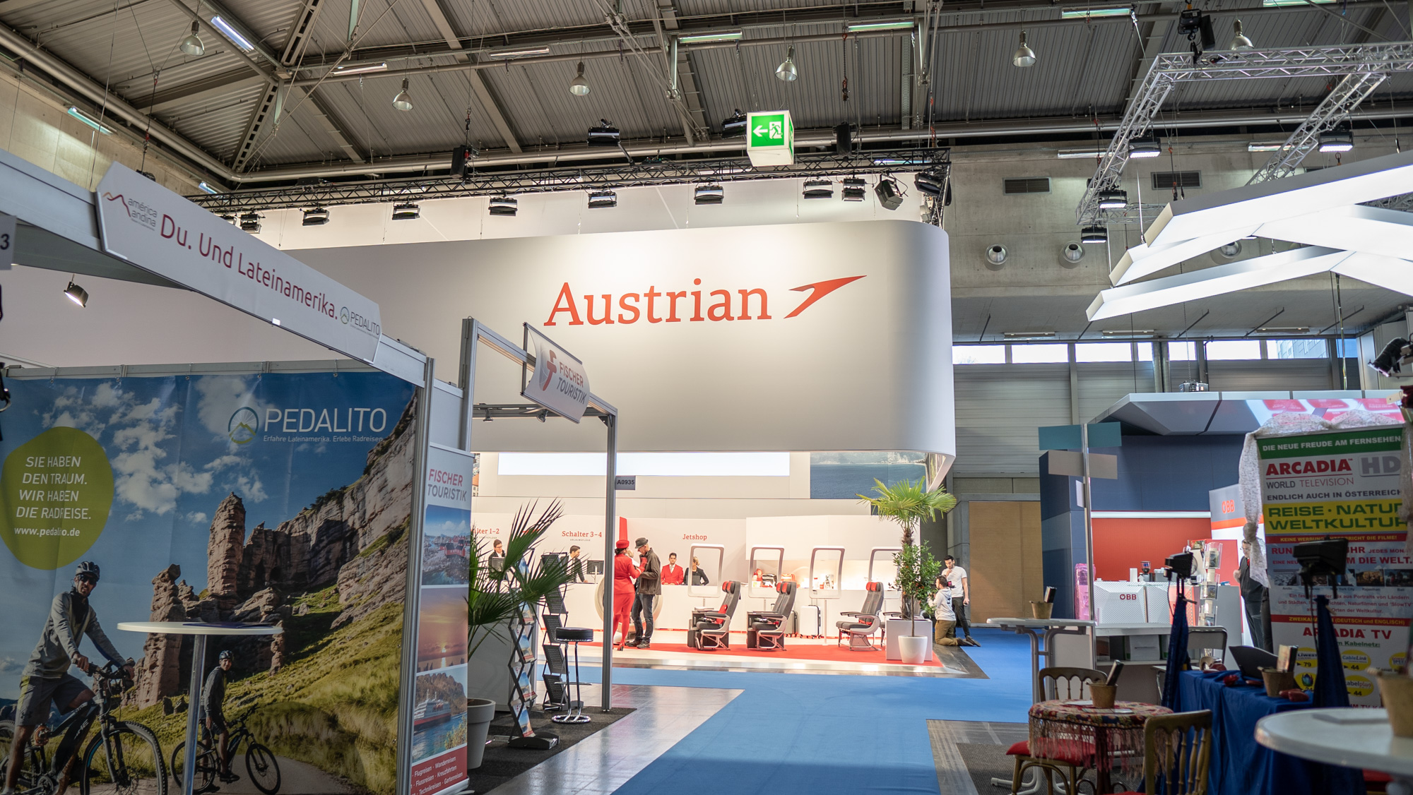 Für den hellen, luftigen Messeauftritt bei der Ferienmesse 2019 in der Messe Wien wurde Habegger mit der technischen Ausstattung des Messestandes von Austrian Airlines beauftragt.