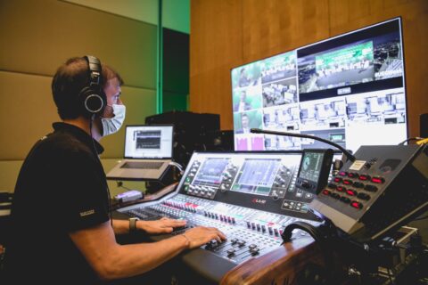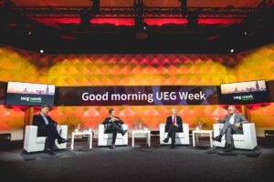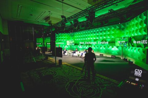 Heuer fand der dreitägige Kongress der UEG erstmals virtuell statt. Deshalb haben wir ein multifunktionelles Studio mit Audio, Video, Ton, Licht und einer Studio-Hintergrund Kombination aus modularen Dekobau-Elementen „Atomic Panels“ und LED-Walls designt.