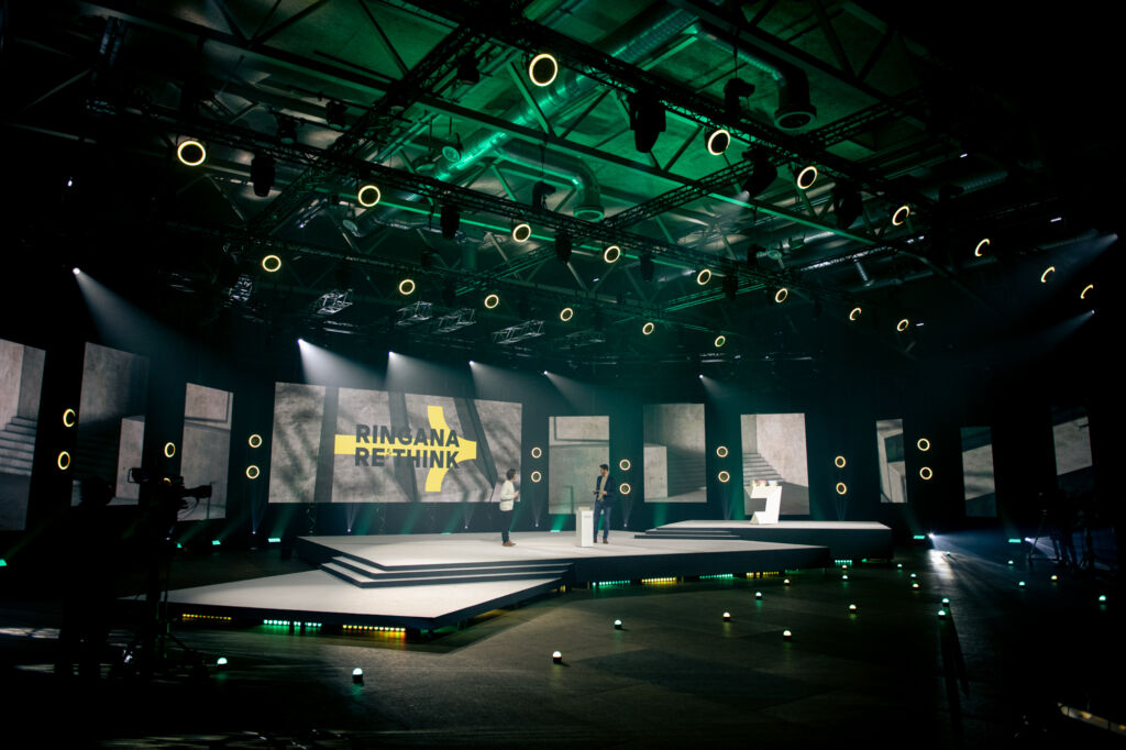 Auch die Moderatorin oder der Moderator einer virtuellen Veranstaltung muss ins richtige Scheinwerferlicht gerückt werden. „Gerade im Studio-Setting ist es besonders einfach, den Protagonisten von allen Seiten richtig auszuleuchten. Damit wirkt die Person gleich viel 3-dimensionaler, als wenn sie nur von vorne angestrahlt wird“, erklärt der Technik-Profi.© RINGANA